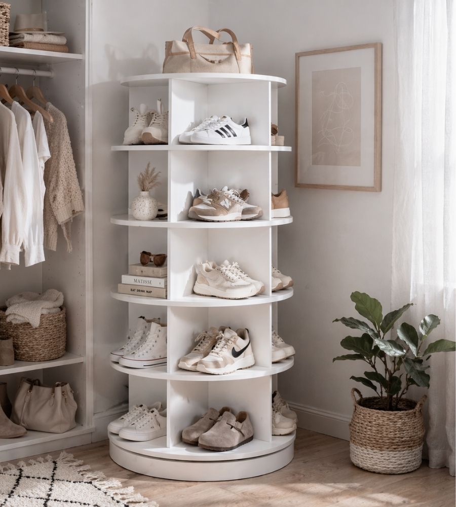 Are you looking for a creative way to store and access your shoes easily? A Lazy Susan shoe organizer is a fun idea that brings style and order to your closet. The rotating design allows you to spin through your shoe collection to quickly find the perfect pair for any outfit. You can keep it inside your closet or out in your bedroom.