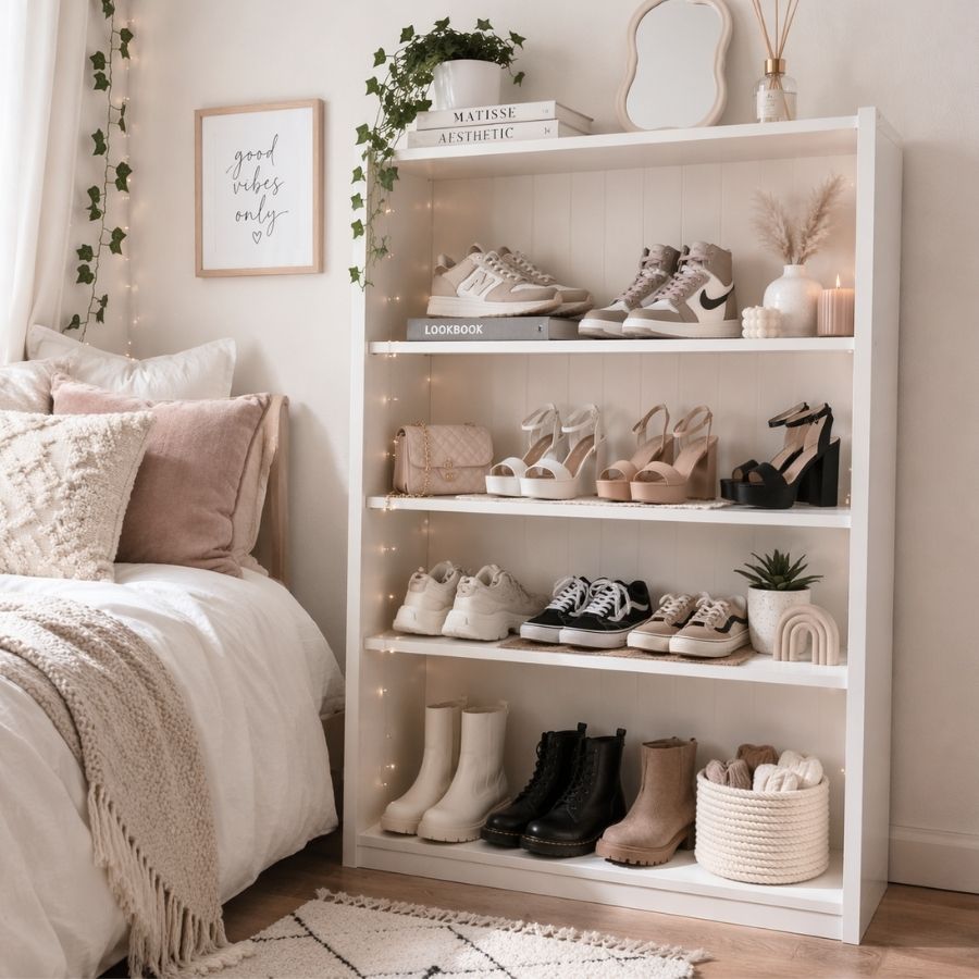 Grouping your shoes by type is one of the easiest ways to keep your collection organized and functional. I personally have been using this method for years and love it. Store similar styles together, like sneakers, sandals, boots, and heels. This way, you always know exactly where to find what you need.